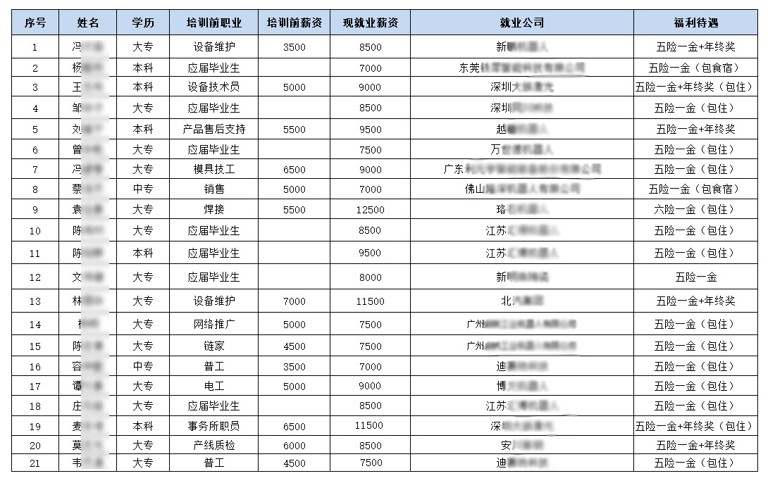犀靈機(jī)器人培訓(xùn)班第6期共招生21名,現(xiàn)就來(lái)平均薪金為8714元