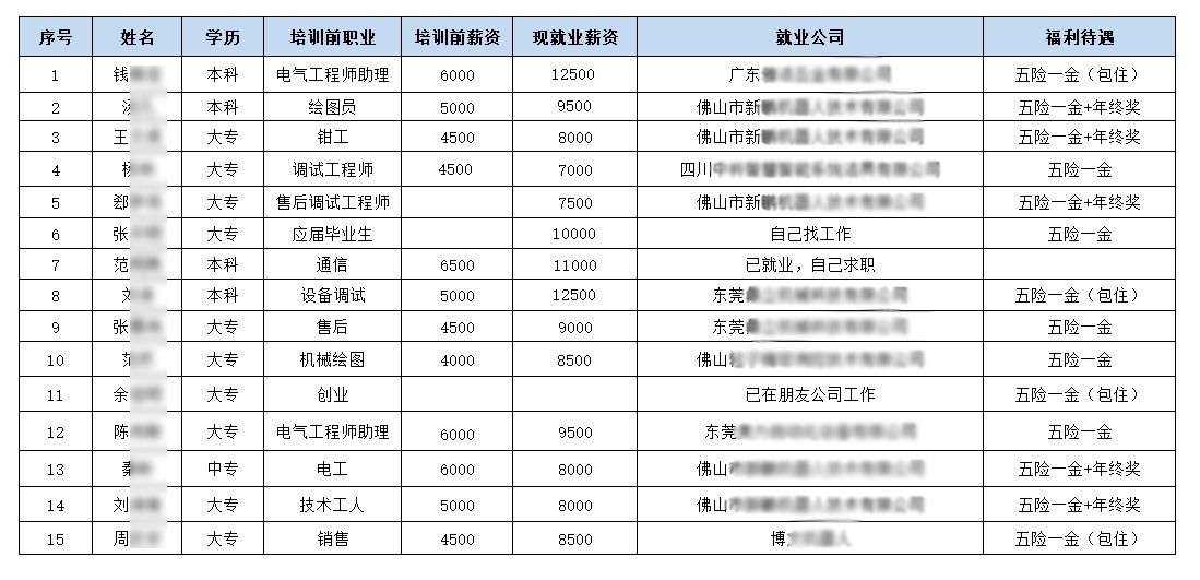 犀靈機(jī)器人培訓(xùn)班第8期共招生15名,現(xiàn)就來平均薪金為9250元