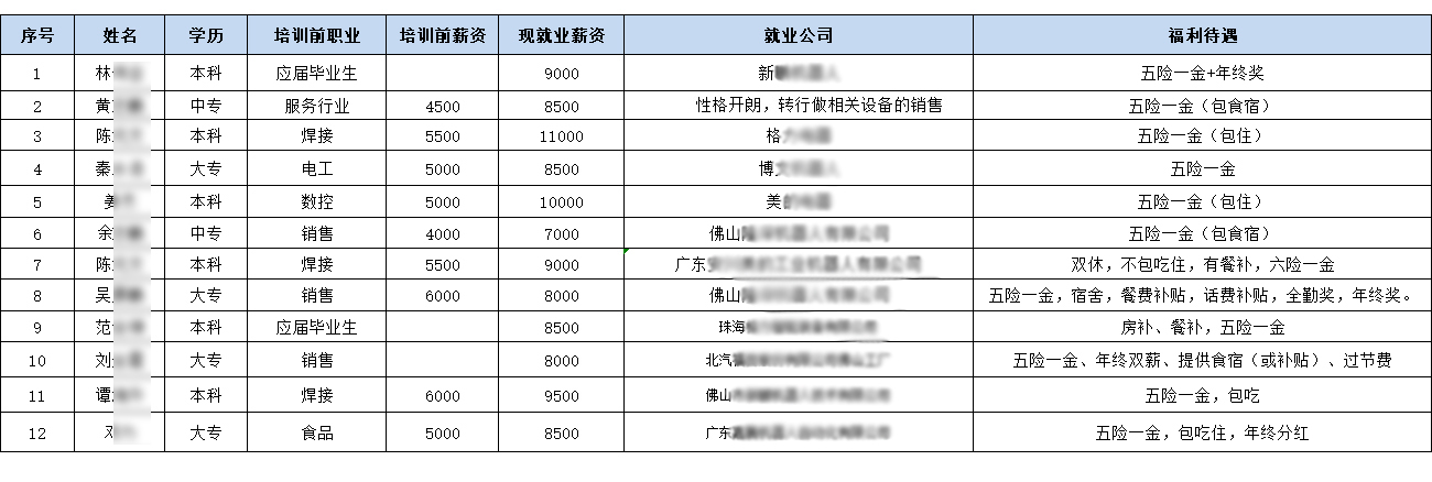工作,學(xué)歷不高,在經(jīng)過(guò)兩個(gè)多月的培訓(xùn)后成功進(jìn)入佛山一家機(jī)器人公司,由于肯學(xué)肯干,在入職一年后工資從5500漲到7000,在就業(yè)部王老師與其領(lǐng)導(dǎo)的回訪中,公司非常
