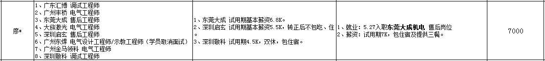 就業(yè)亮點(diǎn)四:廖*同學(xué)入職東莞大成,大專學(xué)歷應(yīng)屆畢業(yè)生試用期月薪7000元