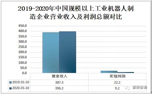 根據(jù)中國工信部數(shù)據(jù)顯示:2020年1-10月全國規(guī)模以上工業(yè)機(jī)器人制造企業(yè)營業(yè)收入396.2億元,同比增長2.3%