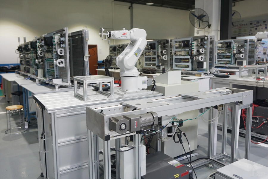 據(jù)秦磊介紹:犀靈一開始就以學(xué)員的能力培養(yǎng)為目標,采用企業(yè)級案例教學(xué)滿足學(xué)員的剛性需求。在團隊建設(shè)上,犀靈除了聘請在機器人應(yīng)用領(lǐng)域有豐富經(jīng)驗的人員,還對在新鵬機器人企業(yè)從事多年的工程師進行教學(xué)培訓(xùn),讓他們能夠?qū)⒆约贺S富的技術(shù)知識更好的傳授給學(xué)員。在設(shè)備上,犀靈配套了近30套六軸機器人,包含埃夫特、庫卡、ABB等品牌,以及45套PLC工業(yè)控制實訓(xùn)平臺。除此之外,還配備了焊接、打磨、噴涂的典型工作站及綜合實訓(xùn)裝置等一系列設(shè)備。