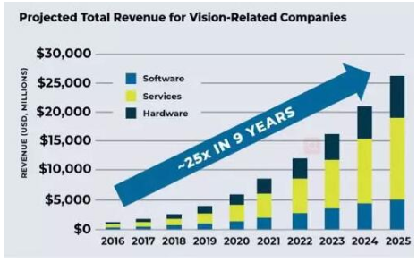 ? 圖1c:全球范圍內(nèi)對(duì)計(jì)算機(jī)視覺相關(guān)公司的投資,將驅(qū)動(dòng)這些公司未來的收入大幅增長。(來源:Tractica)