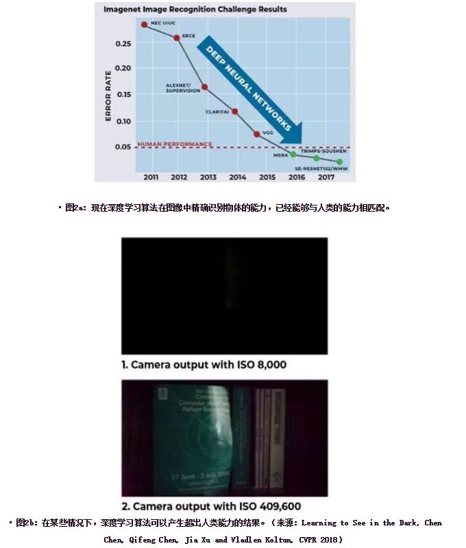 ? 圖2b:在某些情況下,深度學(xué)習(xí)算法可以產(chǎn)生超出人類能力的結(jié)果。(來源:Learning to See in the Dark, Chen Chen, Qifeng Chen, Jia Xu and Vladlen Koltun, CVPR 2018)