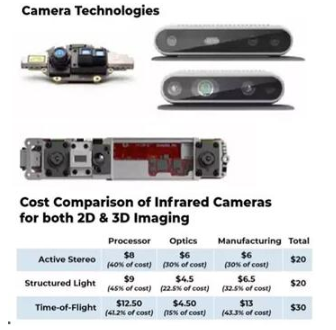 ? 圖5:最新一代小型、低成本、低功耗3D相機(jī)實(shí)現(xiàn)了強(qiáng)大的視覺部署(上圖);它們的紅外照明模塊同樣越來越具有成本效益(下圖)。(來源:Microsoft/Intel/Occipital/Yole Développement)