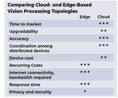 前兩點(diǎn)已經(jīng)討論過,但第三點(diǎn)值得注意。云計(jì)算作為基于邊緣視覺處理方法的輔助(如果不是替代的話),正變得越來越普遍。