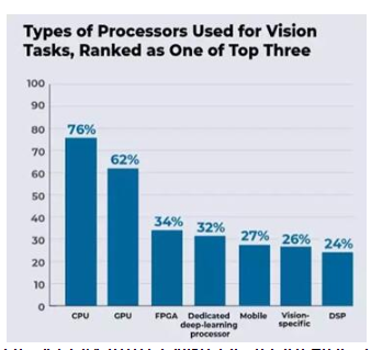 EVA最近在開發(fā)者調(diào)查中收集的數(shù)據(jù)顯示,深度學(xué)習(xí)專用處理器的采用顯著增加;近1/3的受訪者表示現(xiàn)在正在使用深度學(xué)習(xí)專用處理器,而兩年前這一比例只有19%(見圖7,由于調(diào)查對(duì)象要求標(biāo)記所有他們的項(xiàng)目使用的處理器,所以總數(shù)超過100%)。這種趨勢(shì)尤其令人震驚,因?yàn)樵趲啄昵埃疃葘W(xué)習(xí)專用處理器還根本不存在。同樣需要注意的是,其他處理架構(gòu)通常用于各種視覺任務(wù)。