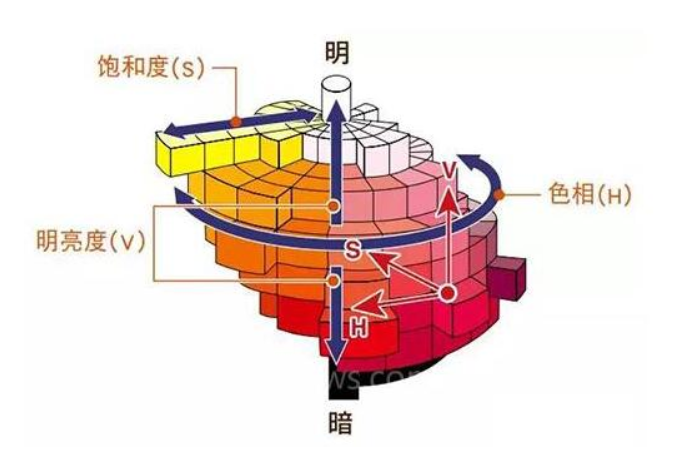 簡單講就是光線照到物體,反射到眼中的部分被大腦感知,引起的一種感覺。通過色相(Hue)、飽和度(Saturation)和明亮度(Value)來表示,即我們常說的HSV。