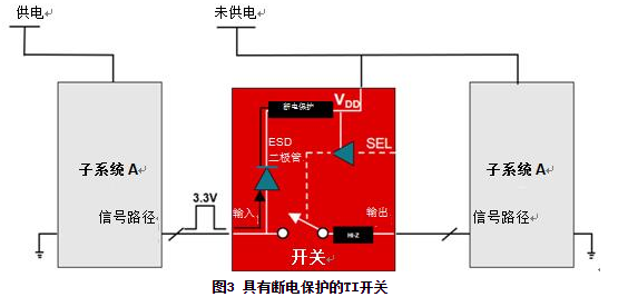 為了解決這種問(wèn)題,TI斷電保護(hù)開(kāi)關(guān)可在輸入/輸出(I/O)管腳上保持高阻抗?fàn)顟B(tài),從而防止未供電的電源軌(VDD)和SEL管腳出現(xiàn)反向供電現(xiàn)象。