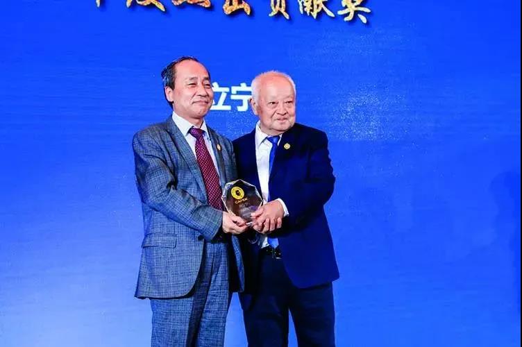 圖2 | 孫立寧(左)在恰佩克頒獎大會上被授予突出貢獻獎,和恩師蔡鶴皋院士合影