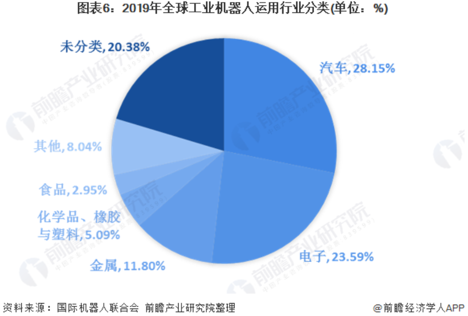 全球工業(yè)機(jī)器人運(yùn)用行業(yè)分類呈現(xiàn)逐步擴(kuò)散趨勢