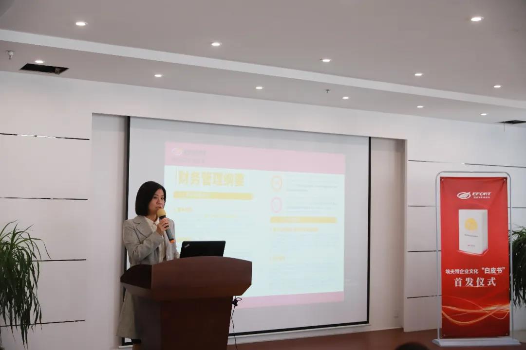 埃夫特財務(wù)總監(jiān)吳奕斐為小伙伴們帶來了《企業(yè)文化白皮書》財務(wù)管理綱要的講解和分享,從財務(wù)管理目的、準(zhǔn)則及有效路徑等幾個方面詮釋了財務(wù)管理的要義,并從全球化的財務(wù)治理體系,數(shù)字化、智能化的財務(wù)經(jīng)營管理等方面描述、解讀了財務(wù)板塊的核心理念。