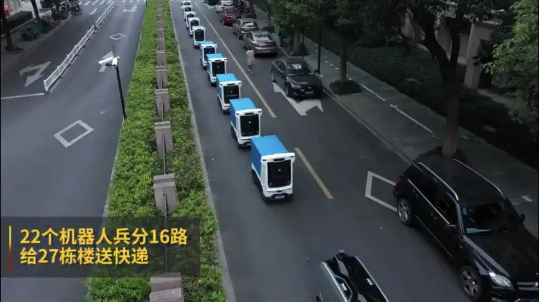 為了緩解快遞高峰壓力、提升末端配送效率,阿里向浙大派駐了一支物流機器人隊伍,接管所有上門配送需求。