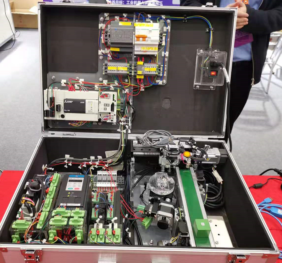 犀靈機(jī)器人工控學(xué)習(xí)箱可以說(shuō)是一個(gè)神奇的百寶箱,將變壓器、PLC、CC-LINK總線、伺服驅(qū)動(dòng)器、變頻器、二軸機(jī)械手、轉(zhuǎn)臺(tái)、傳送帶全部集成到一個(gè)箱子,可以說(shuō)是一箱在手學(xué)遍工控技能沒難度。