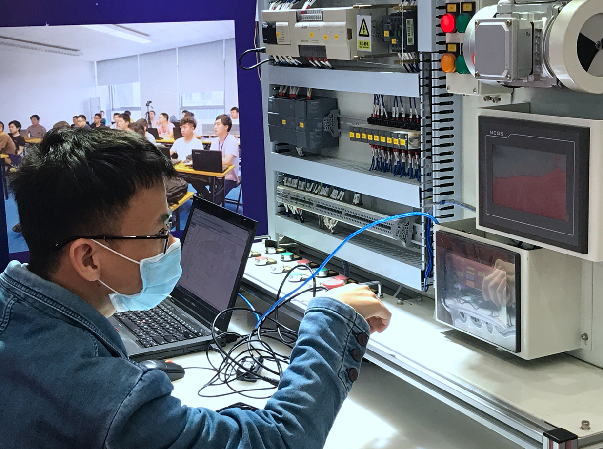 與此同時(shí),一些觀眾對(duì)犀靈機(jī)器人的PLC工控實(shí)訓(xùn)臺(tái)表現(xiàn)出濃厚的興趣,紛紛向犀靈機(jī)器人工程師詢問該設(shè)備的功能和特性。值得一提的是,該設(shè)備與真實(shí)工業(yè)現(xiàn)場(chǎng)使用的設(shè)備基本一致,集成PLC、氣缸、三色燈、變頻器、伺服電機(jī)于一體,是犀靈機(jī)器人培養(yǎng)PLC人才的重要實(shí)訓(xùn)設(shè)備。