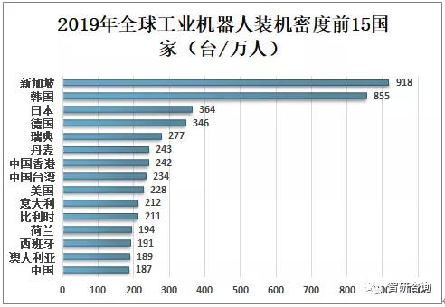雖然中國工業(yè)機器人發(fā)展速度較快。但中國機器人研究事業(yè)起步較晚,導(dǎo)致中國的機器人技術(shù)與發(fā)達(dá)國家之間存在一定差距。根據(jù)IFR數(shù)據(jù)顯示:2019年中國工業(yè)機器人裝機密度全球排名第十五,中國工業(yè)機器人裝機密度為187臺/萬人,遠(yuǎn)遠(yuǎn)落后于新加坡、韓國、日本等發(fā)達(dá)國家。