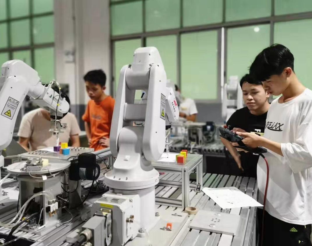 番禺職業(yè)技術(shù)學(xué)院有著非常好的工業(yè)機(jī)器人設(shè)備,但為什么還會(huì)選擇讓同學(xué)們來(lái)到犀靈機(jī)器人培訓(xùn)中心實(shí)訓(xùn),小編就這個(gè)問(wèn)題采訪(fǎng)了來(lái)自番職院的美女老師。學(xué)校是看中犀靈機(jī)器人所學(xué)到的知識(shí),會(huì)與企業(yè)實(shí)際應(yīng)用更接近,而學(xué)校目前的課程還是偏理論為主。這次把大二的學(xué)生帶過(guò)來(lái)實(shí)訓(xùn),是為讓學(xué)生能更好的知道企業(yè)的技術(shù)應(yīng)用,好為他們確定大三的學(xué)習(xí)方向和未來(lái)的職業(yè)定位。